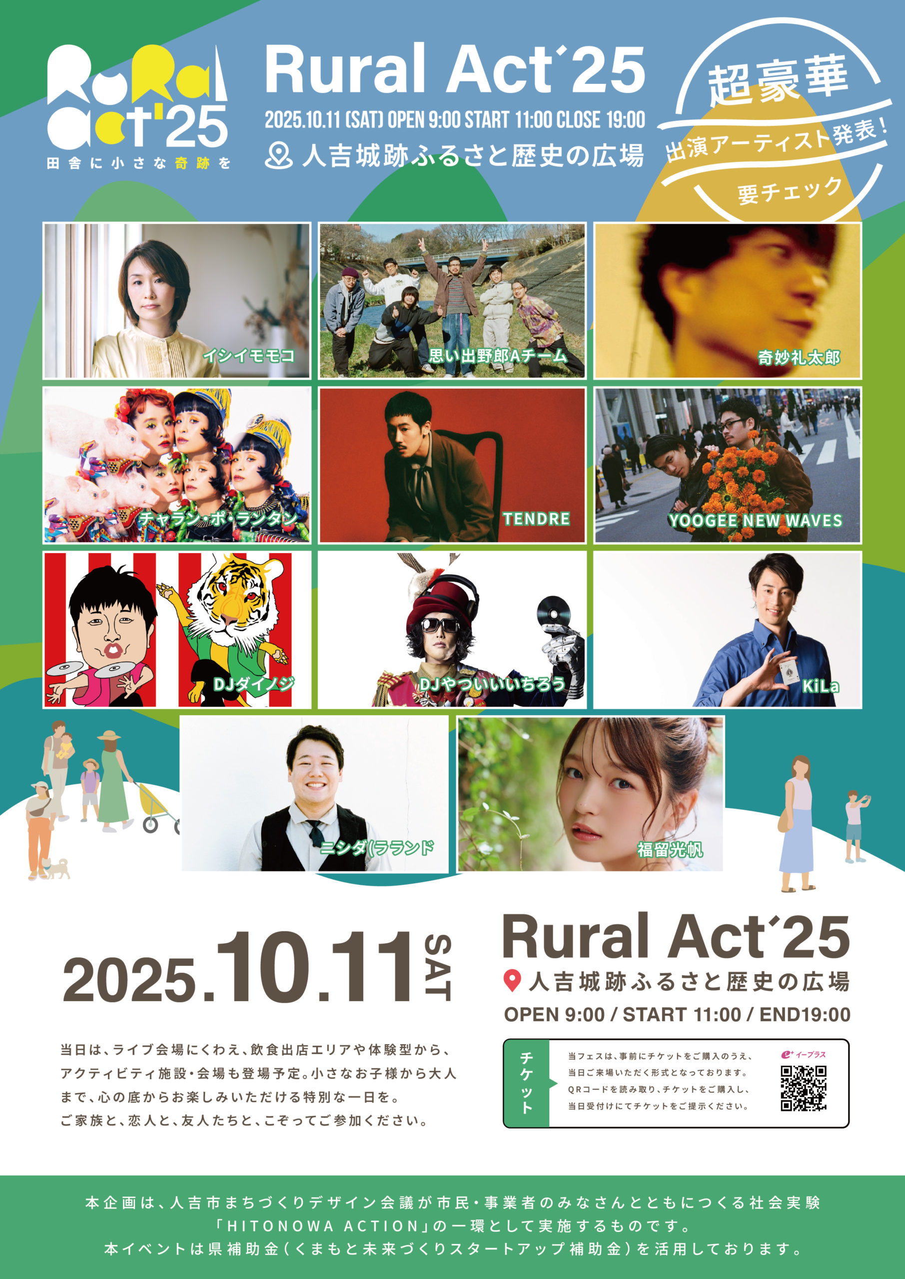 『音楽の力を信じ、地方の未来をあきらめない』ことをコンセプトに、10月11日(土)熊本県人吉市で開催される初の野外音楽フェス『Rural Act 25’』への出演が決定しました🐻