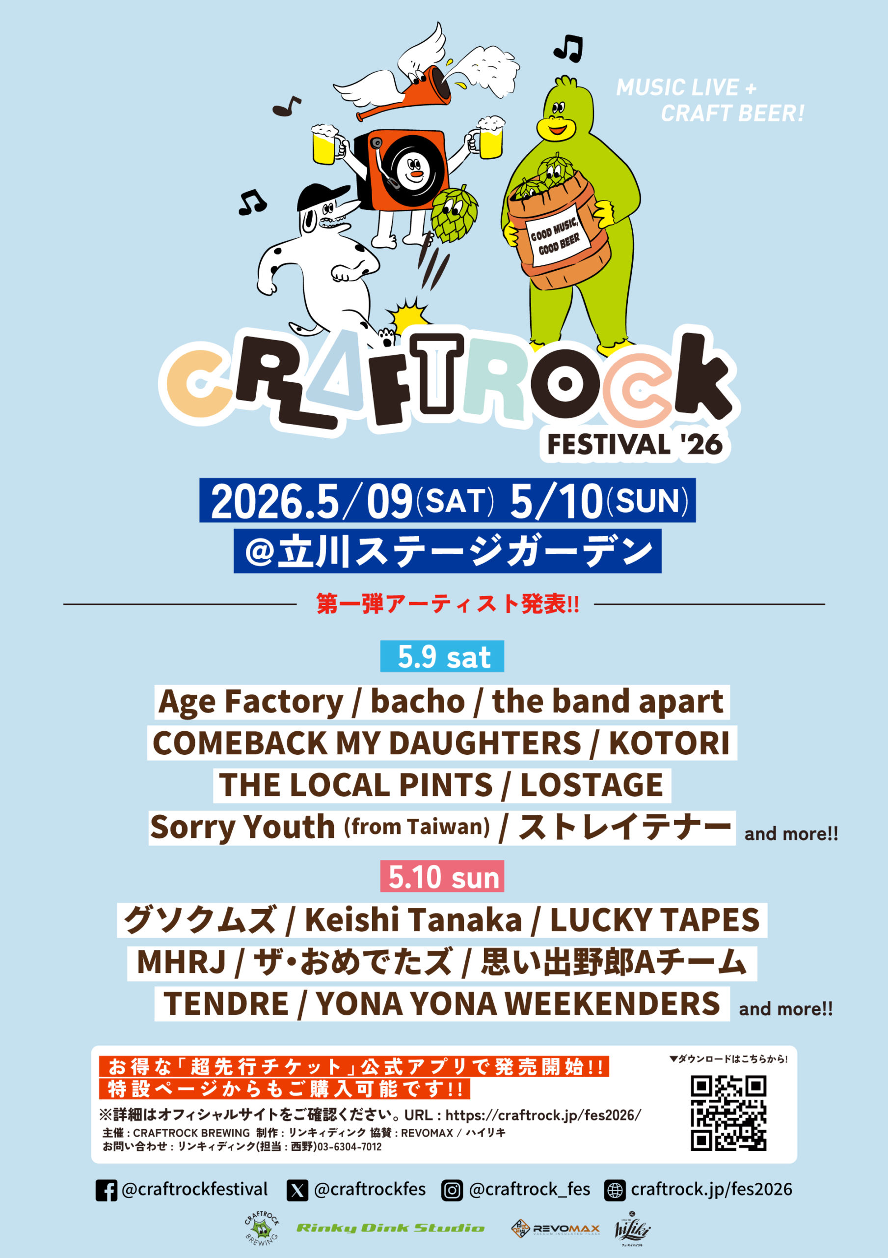立川ステージガーデンで開催される「CRAFT ROCK FESTIVAL 2026」にTENDREが出演決定🍺