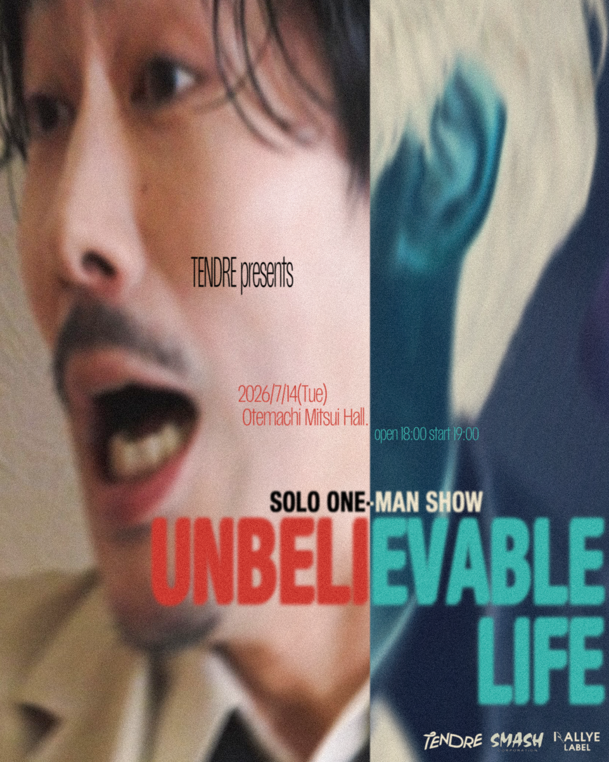 TENDREが新しく企てる実験的ソロワンマンショー『UNBELIEVABLE LIFE (アンビリーバボーライフ)』の開催が決定👀